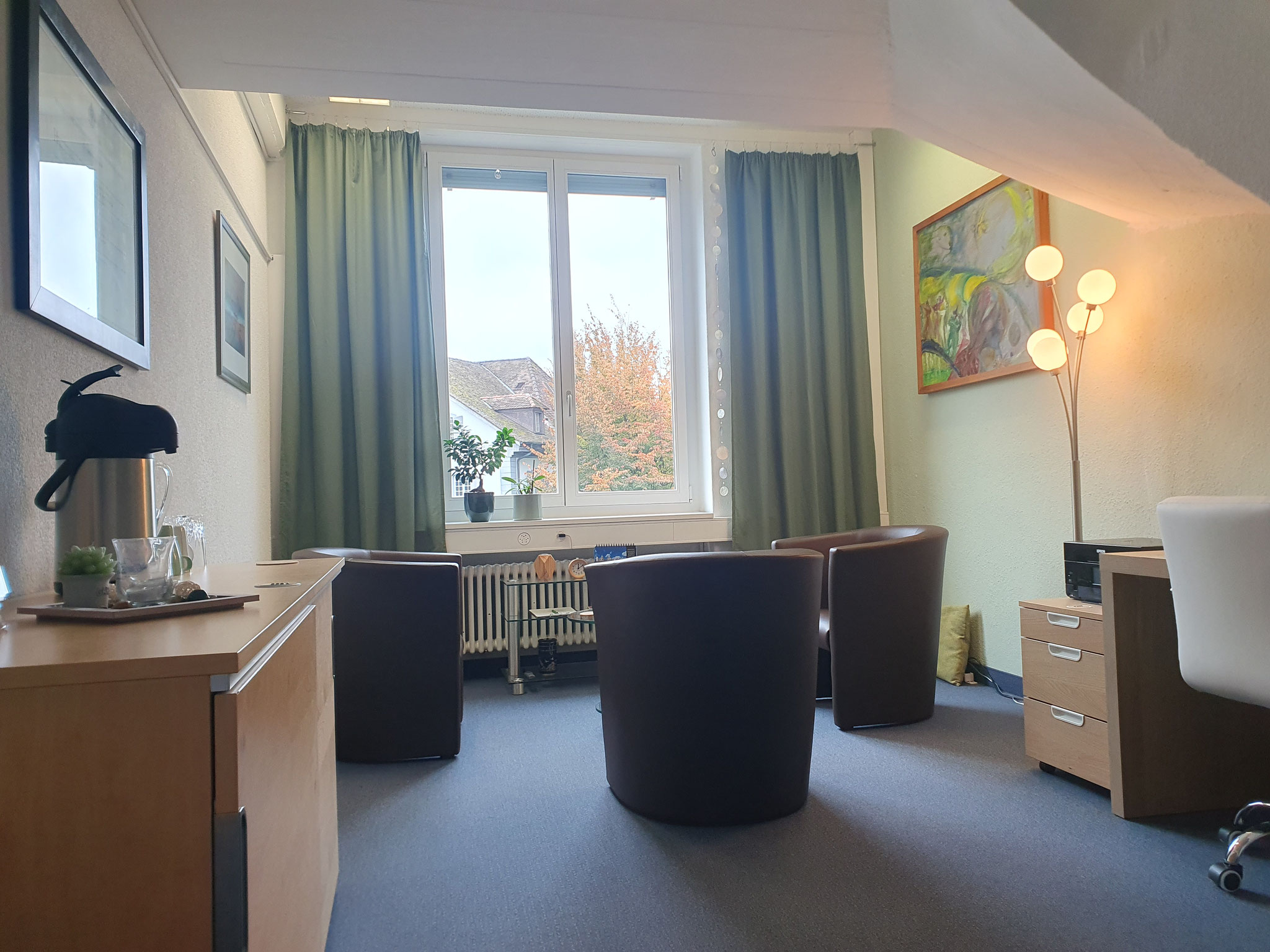 Das Therapiezimmer soll Ihren Therapieprozess durch eine freundliche, einladende, sichere Atmosphäre unterstützen.